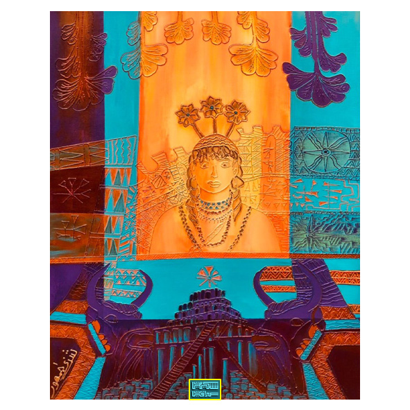 نبذة عن العمل : عشتار مصدر الحياة في الحضارة الاشورية هي النماء والبناء والثقافة والعطاء والموسيقى اسلوب رمزي تعبيري .