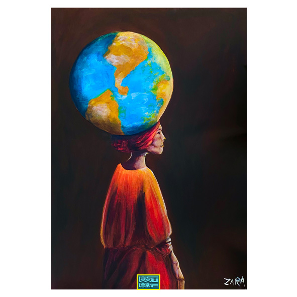 نبذة عن العمل: امرأه وعلى رأسها كوكب الأرض ،بمعنى الأمرأه المكافحة تحمل الدنيا وكل شئ على عاتقها .